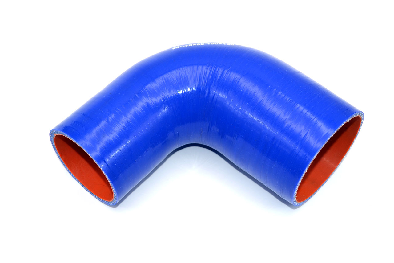 Купить Патрубок силиконовый угловой с переходом Ф 70х90 мм L=150х150 мм, 90° от производителя оптом и в розницу в Перми или с доставкой в ваш город! На сайте cstg.ru вы можете найти Патрубок силиконовый угловой с переходом Ф 70х90 мм L=150х150 мм, 90° по выгодным ценам.